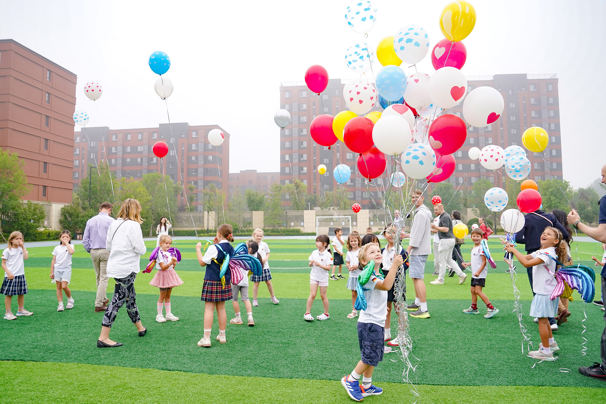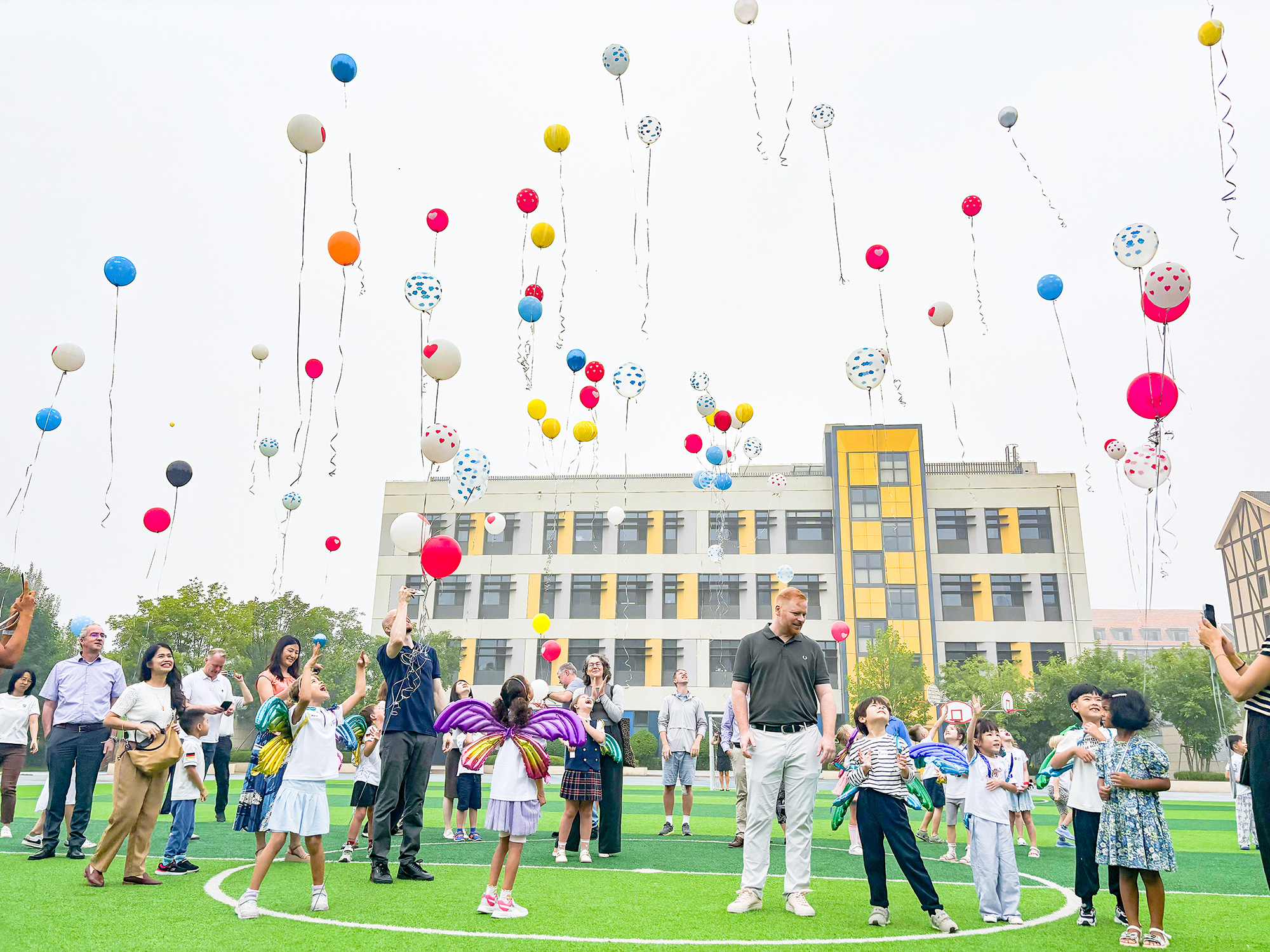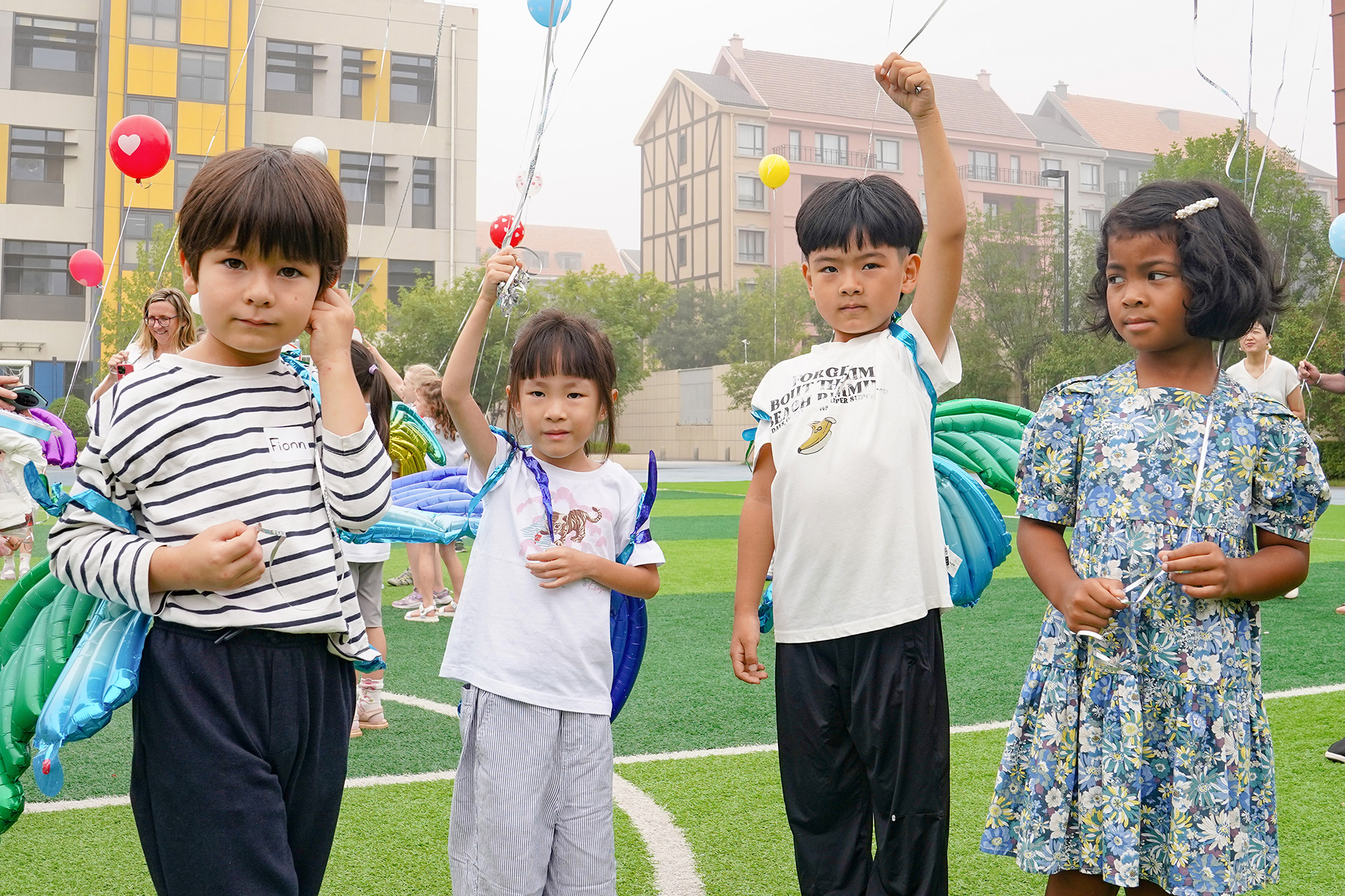 The new students have completed the sense of ritual on their very first day of school. Draped in “wings” symbolizing hope, they break out of the cocoon and emerge as butterflies—each transformation becoming the best witness to their growth. The butterfly letters carry every child’s expectations, serving both as a declaration of growth and as a quiet promise made to themselves. Together with their parents, they held hands and released colorful balloons on the green playground. In that moment, what became vibrant was not only the sky, but also the hearts illuminated by dreams. A new story begins, gently unfolding from this very instant…