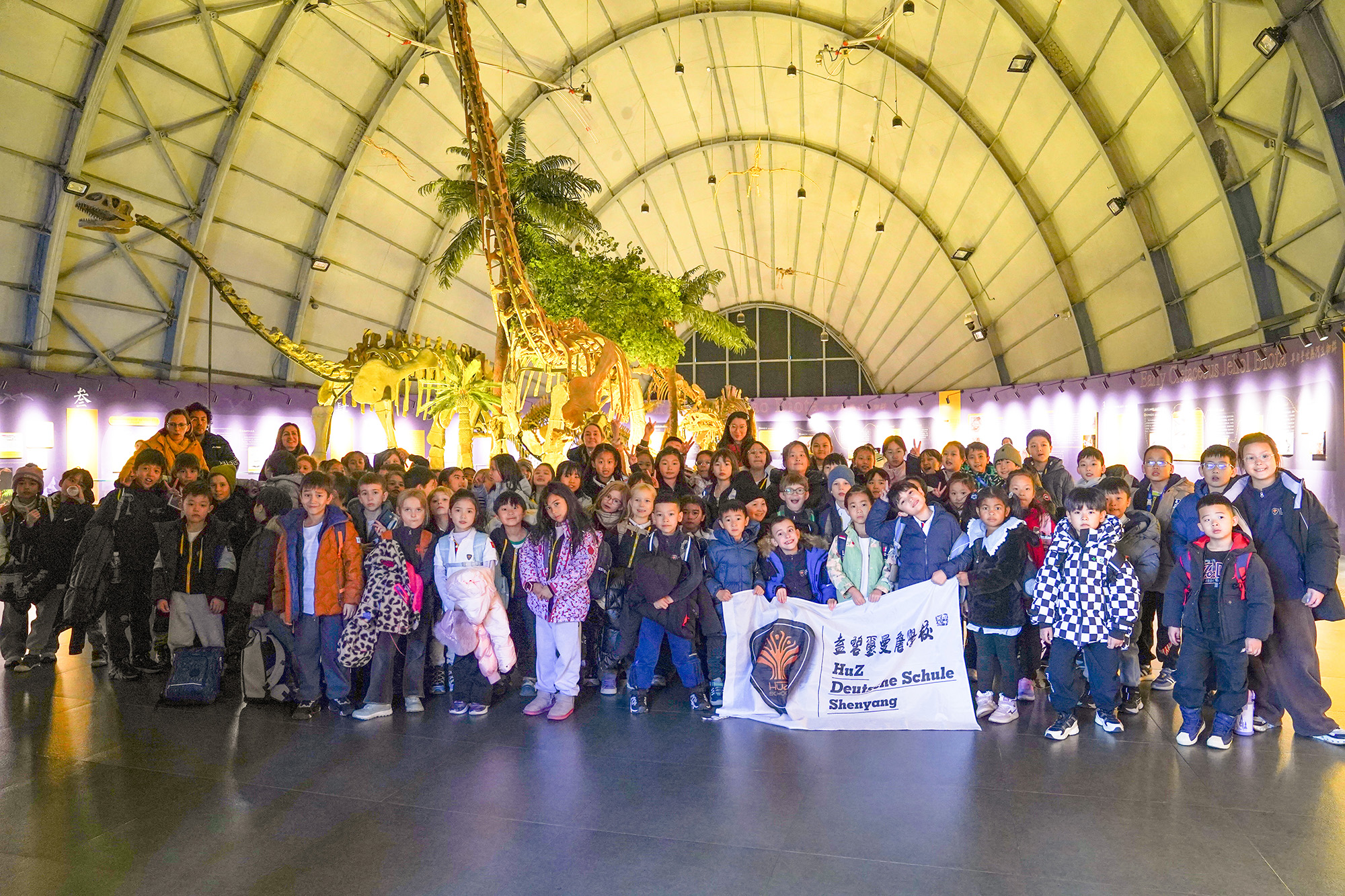 When the children’s small footsteps crossed the threshold of the Liaoning Paleontology Museum, time seemed to instantly rewind millions of years. Students from Grades 1 to 4 at HuZ School embarked on a paleontological learning journey that bridged languages and eras. Here, the origins of dinosaurs, precious fossil treasures, and the mysteries of how birds came to be were transformed into surprises they could see and feel up close.