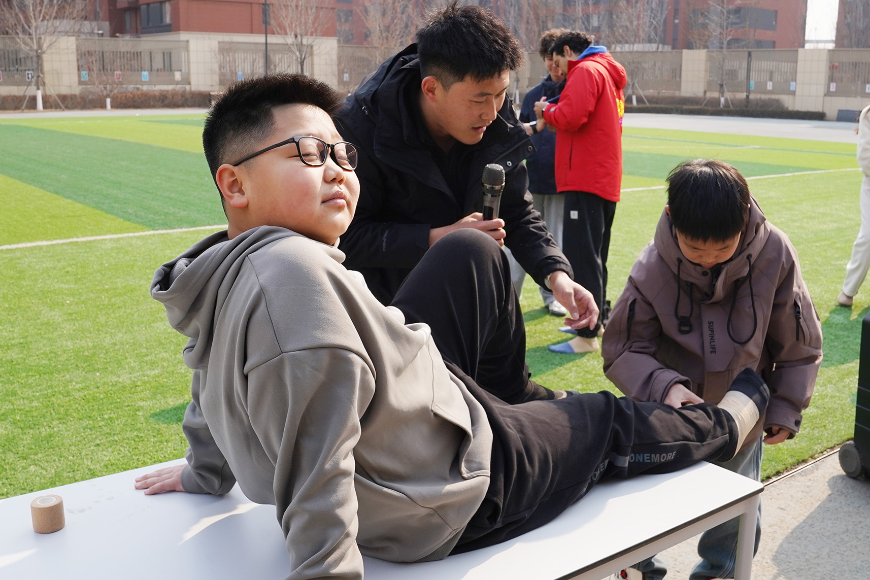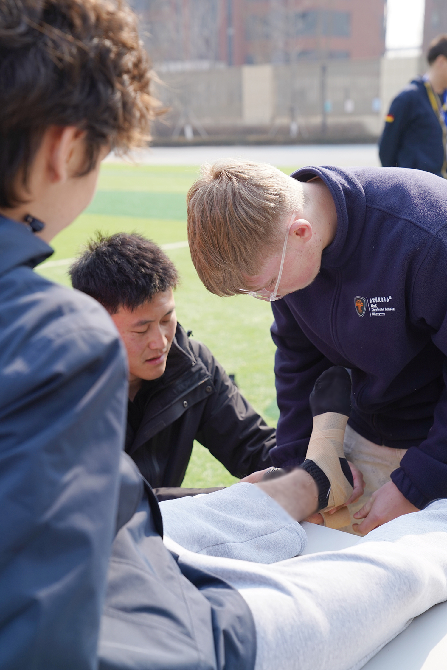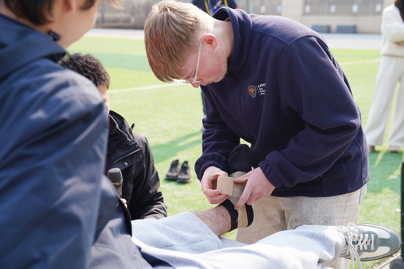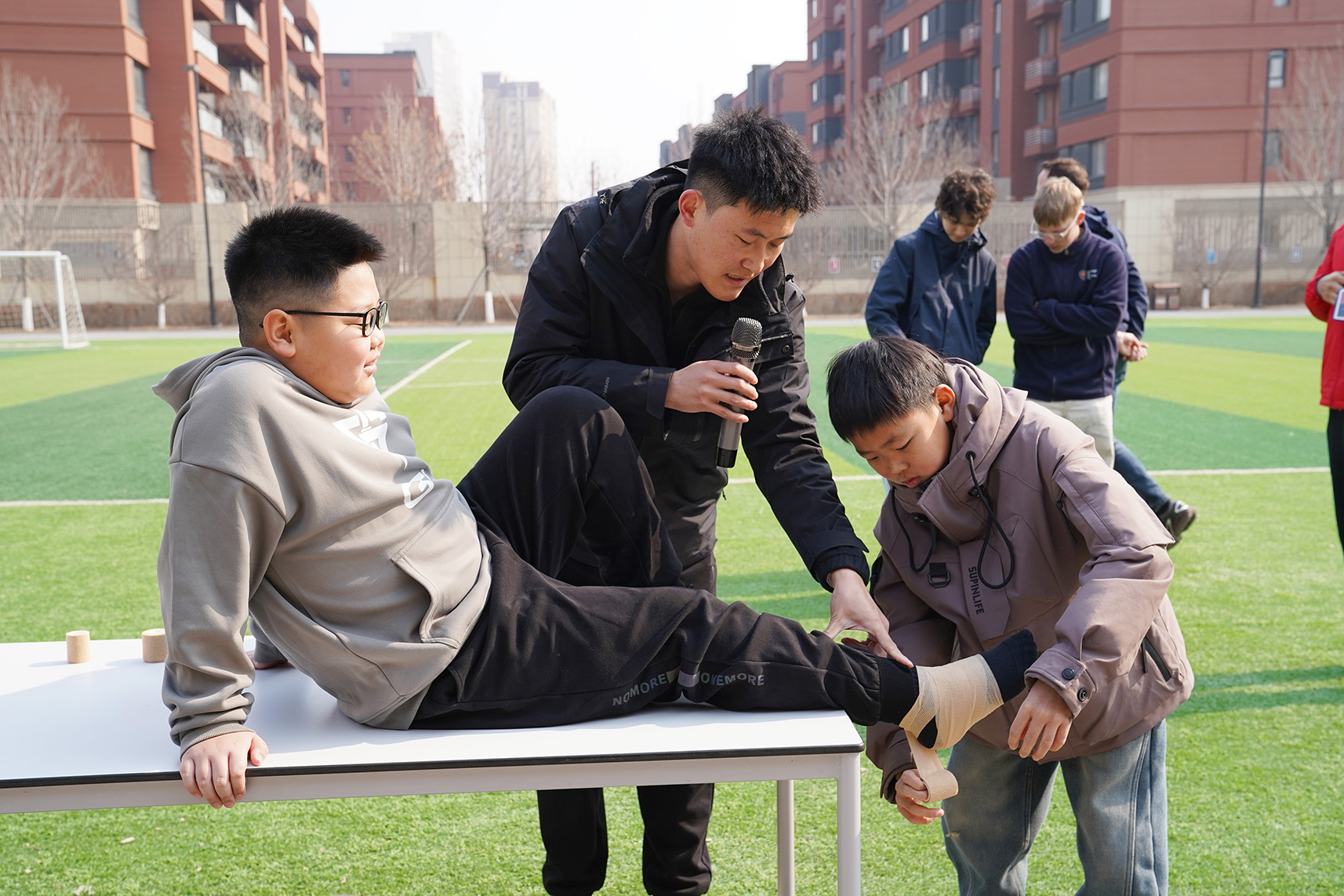 After the drill, the most anticipated session began: first aid for ankle sprains. Considering that students can easily twist their ankles during daily activities and sports, teachers provided an immersive lesson on how to handle such injuries calmly and correctly.