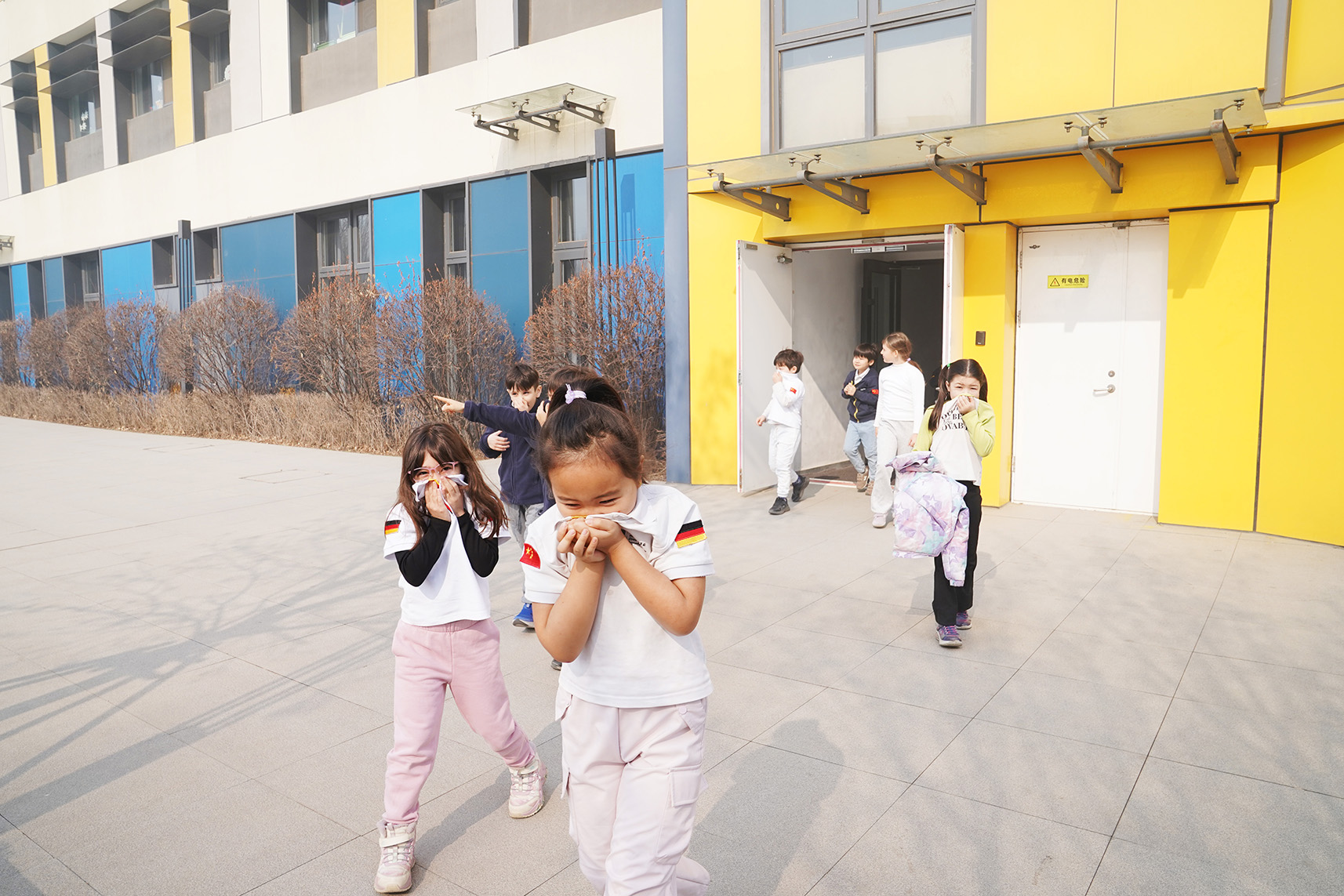 As the urgent alarm broke the calm of the campus, all teachers and students quickly sprang into action. Under the organized guidance of their teachers, students evacuated swiftly and orderly to designated safe areas. After the evacuation, teachers checked attendance and reviewed the procedures, reinforcing key safety tips.