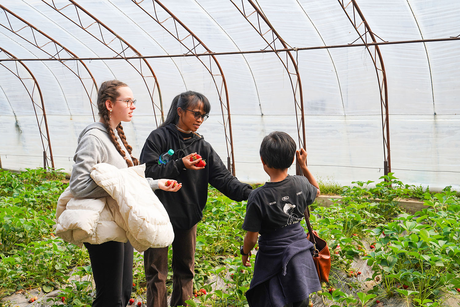 Filled with excitement and anticipation, students enjoyed a lively journey, eager to connect with nature. Upon arriving at the farm, they were greeted by rows of vibrant red strawberries and flourishing organic vegetables. Through guided learning, students explored how organic crops are grown—from soil enrichment to natural pest control and fertilization. Discovering that these crops are cultivated without chemical pesticides or synthetic fertilizers helped them appreciate the dedication behind every harvest.